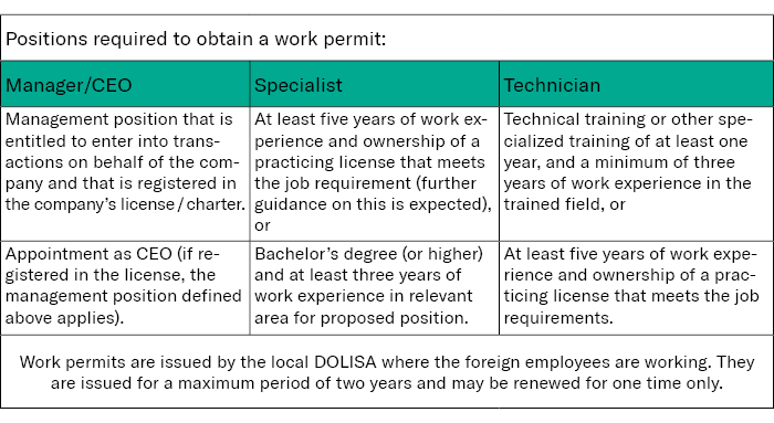 Can work permits, if required, be applied for by an overseas company or the foreign individuals directly or is the involvement of a local entity required?