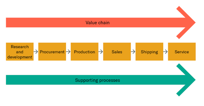 The following diagram which shows the standard value chain in companies illustrates this and indicates interlinking areas:
