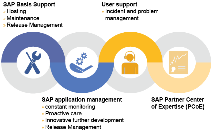 As a Full Service Provider, we offer you comprehensive assistance from a single source: Our expertise in the area of SAP consulting, implementation and designing of SAP solutions is supplemented with certified competence in IT operations and assistance. In addition to application management, hosting and maintenance, we are your contractual partner for SAP licences.