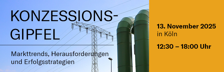 ​​​​​​​​​​​​​​​​​​​​​​​​​​​​​​​​​​​​​​​​​​​​​​​​​​​​​​​​​​​​​​​​​​​​​Nutzen Sie die Gelegenheit, sich beim exklusiven Konzessionsgipfel über aktuelle Entwicklungen im Wettbewerb um Strom- und Gaskonzessionen zu informieren.